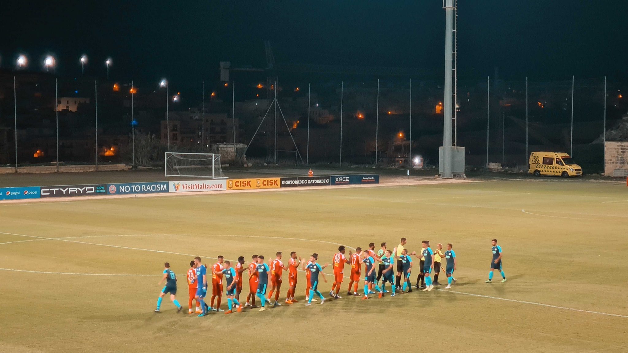 Im Victor Tedesco Stadium gibt es ein Wiedersehen mit der Blaskapelle. Dieses Mal muss die Besetzung allerdings eine andere sein, denn die Qualität liegt weit unterhalb der Performance aus dem Ta‘ Qali Stadion. Sweet Caroline, komplett schief und aus dem Takt.