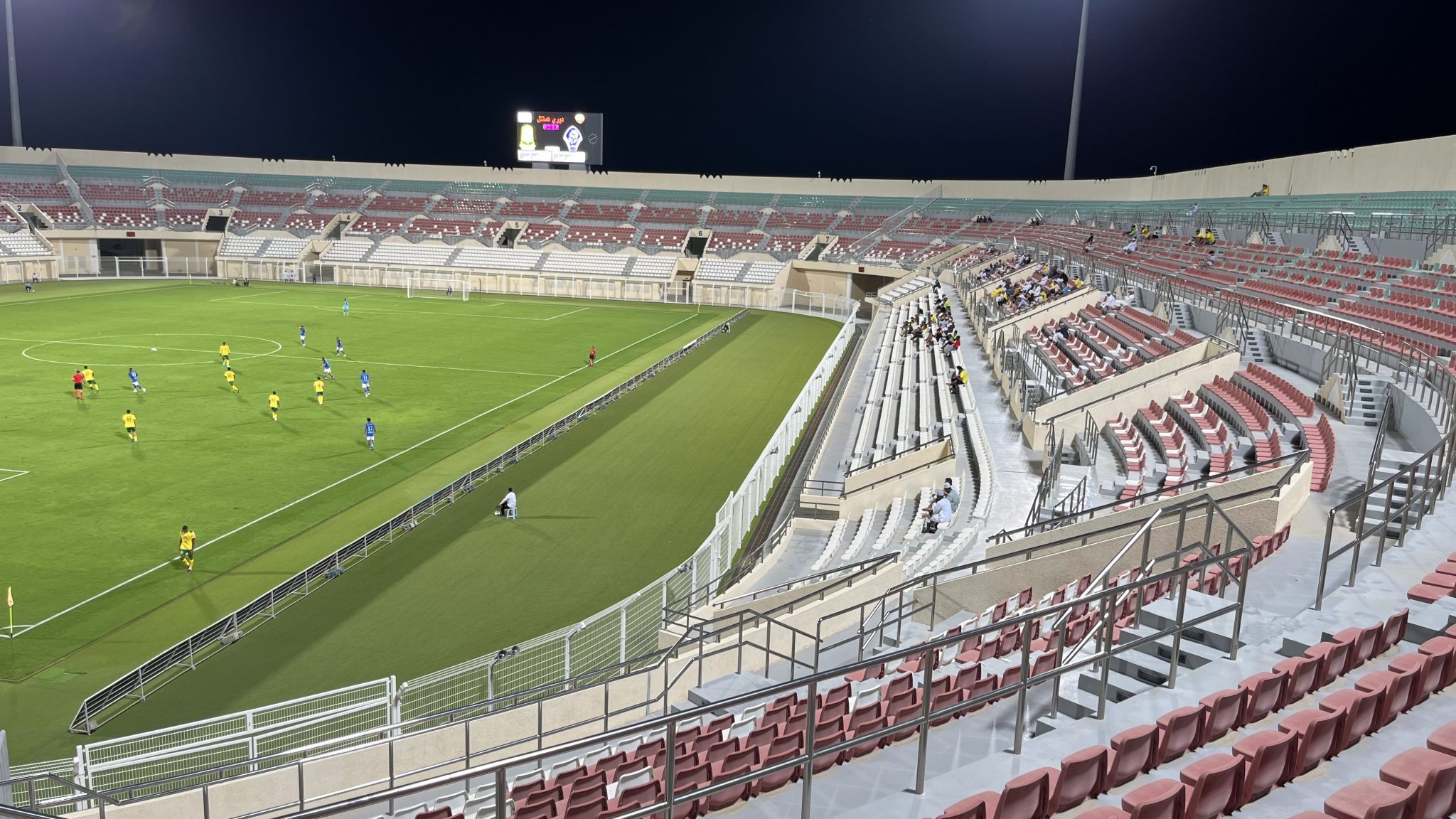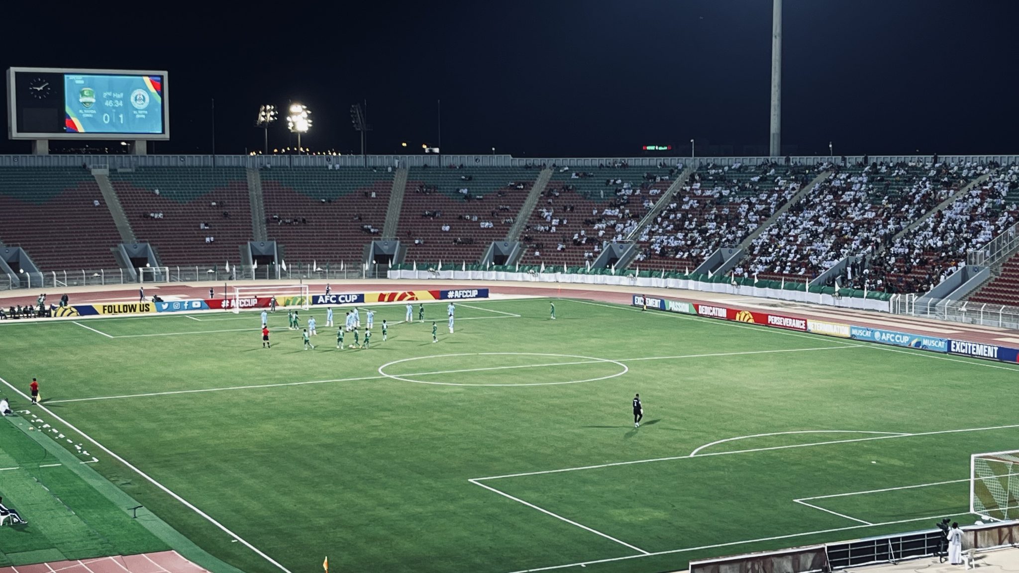 Eine schöne Kombination führt zum Schluss 1:0 durch die Heimmannschaf, das weitere 9 Minuten durch einen Slapstick Abwehrfehler ausgeglichen wird. Kurz vor der Halbzeit geht der Al-Seeb Club wieder in Führung. Der Siuuu Torjubel ist mit den Fans einstudiert. Kurz vor Ende der Partie fällt dann die Entscheidung.