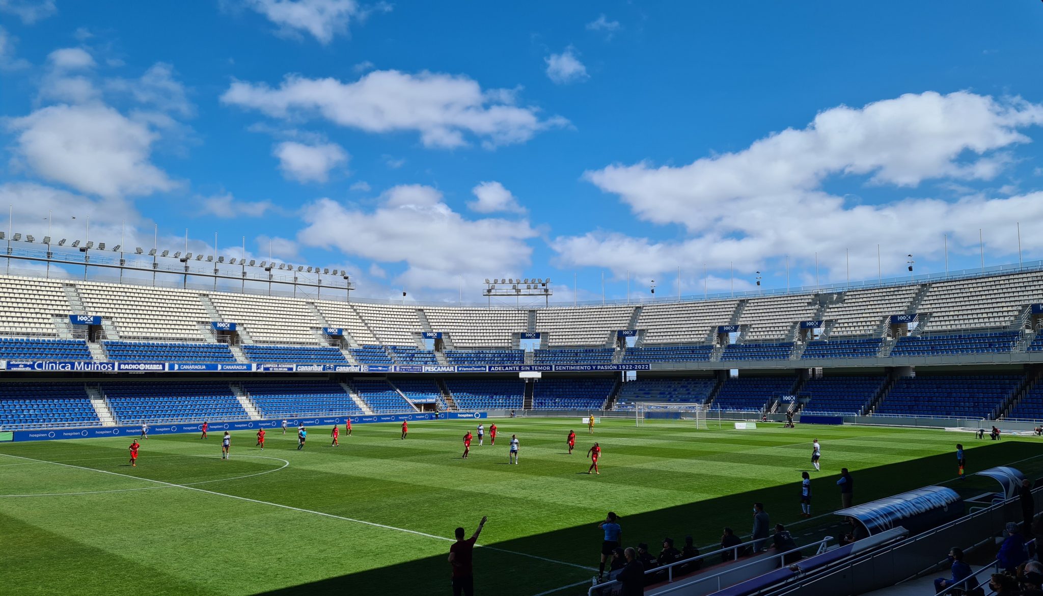 Zum Abschluss der internationalen Frauenwoche wird das größte Stadion Teneriffas in Santa Cruz für die Frauenmannschaft Unión Deportiva Granadilla (UDG) aus dem Süden der Insel geöffnet. Die Chance wird genutzt: Das Team von UDG und die Gäste aus Sevilla rühren mit einem kurzweiligen, offensiv ansehnlichem Spiel ordentlich die Werbetrommel für den spanischen Frauenfußball.
